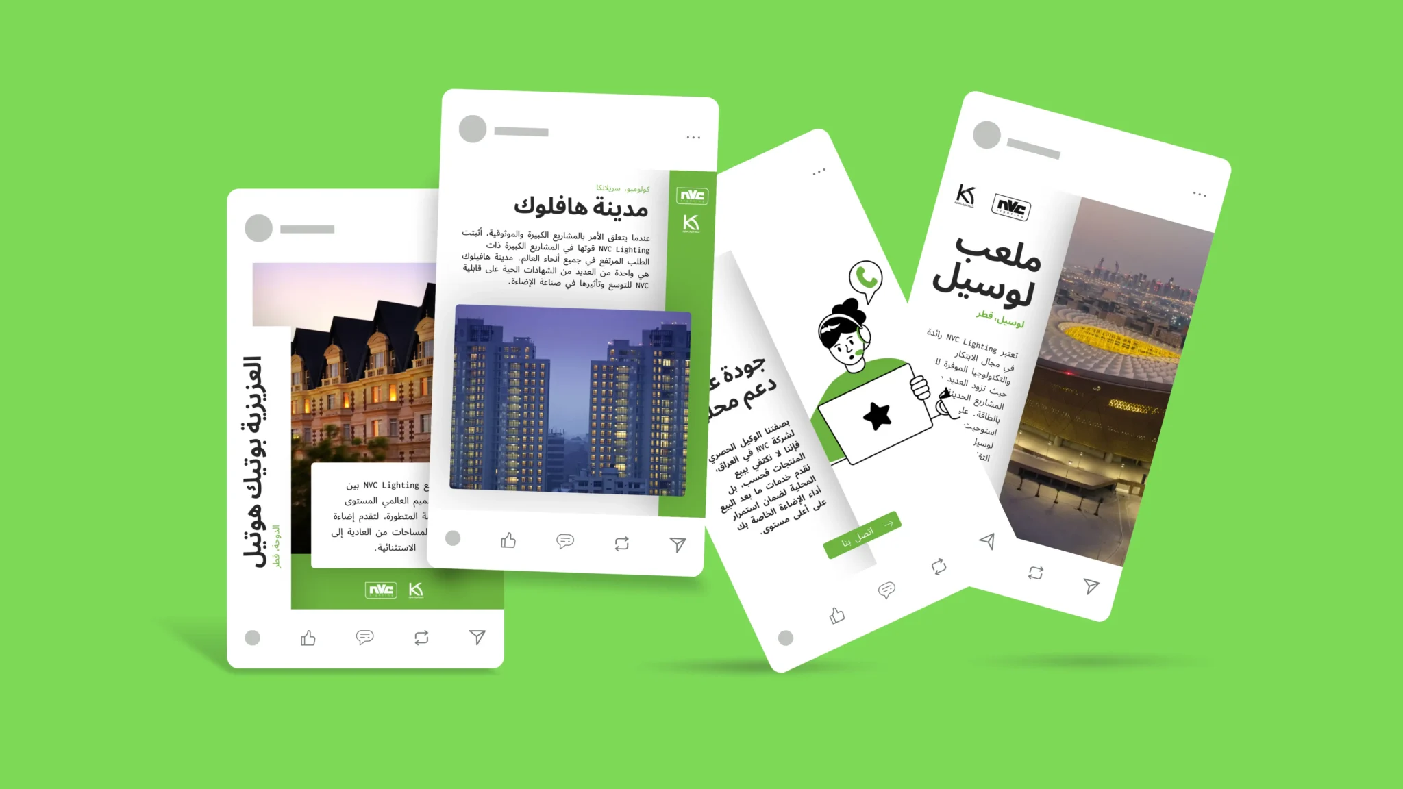 I produced a mix of static posts and reels that cover both “brand-level” communication and “product-level” communication. On the brand side, the creative leaned on credibility and global footprint—highlighting the type of high-profile environments NVC supports (including the Qatar World Cup stadium lighting project at Lusail Stadium and Stadium 974).